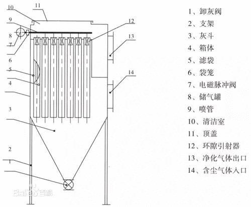 ⑴ 袋室內往往發生濕氣凝結現象,這是含濕氣體,特別是燃燒產生的氣體冷卻后引起的,因此,要在系統冷卻之前,把含濕氣體排出去,完全換上干燥的空氣,也就是在工藝設備停止運轉后,袋式除塵器的排風機應運行一段時間后,才停止運行。