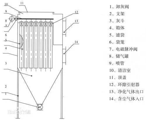 袋式除塵器結(jié)構(gòu)圖: